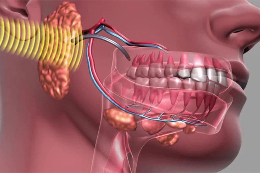 Xuất hiện hạch: Dấu hiệu ung thư xương hàm dễ quan sát là nổi hạch ở vùng cổ, sau tai, hoặc dưới hàm. Người bệnh thấy các khu vực này xuất hiện các hạch bất thường thì nên đi khám ngay.