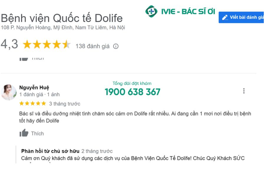 - Bệnh viện Dolife cũng nhận được nhiều đánh giá tích cực của các bệnh nhân về chất lượng dịch vụ thăm khám, chi phí khám nam khoa hợp lý.