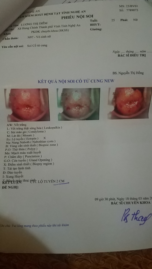 1. Lộ tuyến rộng cái này cần điều trị vì nếu không điều trị sẽ gây viêm tái đi tái lại tạo môi trường không tốt cho tinh trùng. 2. Em nên đi khám vào ngày thứ 2 của kinh nguyệt để xét nghiệm nội tiết và đếm số nang trứng để xem có bị buồng trứng đa nang không em nhé.