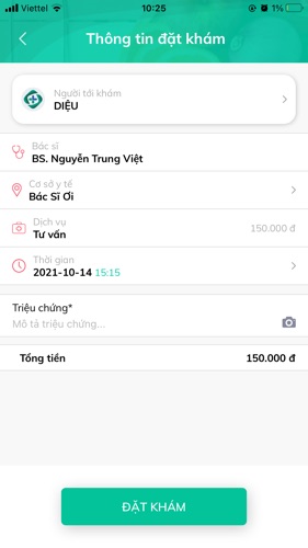 Em nhập triệu chứng trước, rồi ấn đặt khám nhé