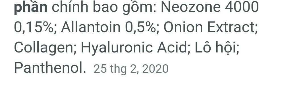 Cái giấy để thành phần bị mất rồi bác sĩ, em thấy có để những thành phần này. Em cũng mới sử dụng được 3 ngày