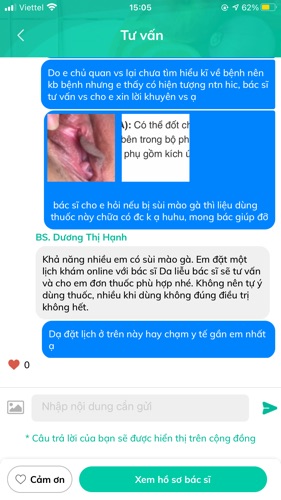 em ấn vào ảnh đại diện của bs và đặt lịch từ khung giờ 18h trở đi, chọn voucher giảm giá 100% để bs trực tiếp hỏi thêm chi tiết và tư vấn cụ thể cho mình nha