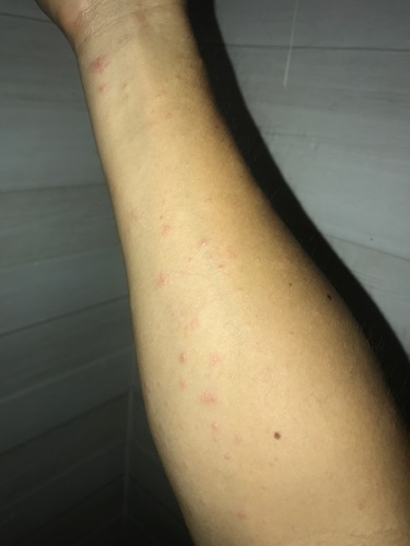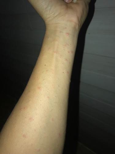 Chào Bác Sĩ. Tôi 3 ngày nay bị nổi những mụn đỏ, một số ở đầu có mun nước nhỏ, bị nổi ở dưới tay, dưới bắp chân, háng, nách, phần ngực bụng, rất ngứa đặc biệt về ban đêm. Có hình ảnh đi kèm. Nhờ bác sĩ xem giùm tình trạng của tôi.