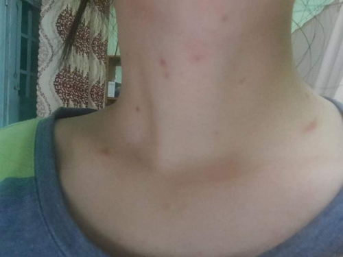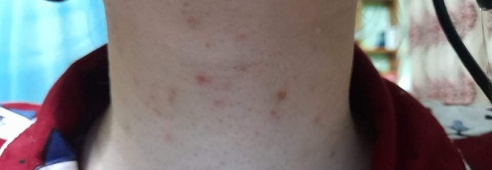Em bị nổi vài hạt ở cổ cỡ cuối tháng 10, khám bs bảo viêm da cơ địa cho thuốc bôi 1 tuần nó lan ra kinh khủng, giờ không dám bôi nữa. Bs xem này là bị bênh gì ạ.Áo xanh là lúc chưa bôi. Áo đỏ là bôi đc 1 tuần