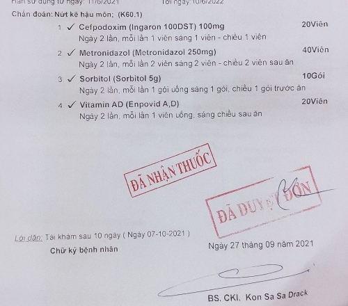 Em bị rò hậu môn đã phẩu thâu cách đã hơn 4 tháng.đi tái khám lại bác sĩ bao hết bị rõ nhưng bị nứt khẻ hậu môn .cho thuốc về uống .thì hậu môn bớt ra dịch nhày hồi nửa.nhưng sau khi hết thuốc thì hậu môn lại ra dịch nhày và hôi lại.em mong bác sĩ giúp em hướng điều trị để ko ray dịch nhày hôi ở hậu môn nửa ạ.em gửi bác sĩ toa thuộc em đã uống ạ