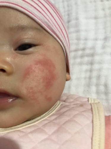 Chào bác sĩ , bé nhà e 3mth bị mẩn đỏ 2 bên má như này là bị gì ạ ? Và có thuốc gì bôi hay hướng dẫn chăm sóc như nào giup e với ạ