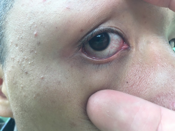 E chào bác sĩ ạ. E đang bị đau mắt đỏ. Đêm ngủ bị chảy nước mắt kèm theo ngứa. Hiện tại e đang sử dụng thuốc tobradex mà k thấy hiệu quả ạ. Bác sĩ cho e hỏi mắt e bị sao vậy ạ