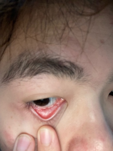 Chào bạn! Ngoài đỏ mắt bạn có thấy cộm vướng hay có rỉ mắt không?