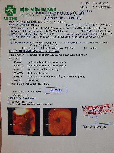 Dạ. Năm nào em cũng nội soi thường là viêm loét kèm HP. Đợt rồi em bị buồn nôn, ợ hơi kèm đau . Đi khám và kết quả như vậy nhưng uống thuốc thì không ok lắm