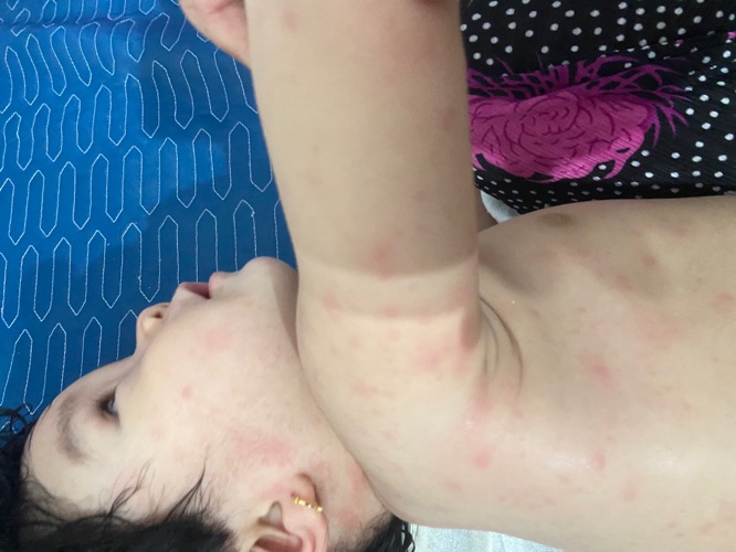 Bác sỹ ơi, cháu nhà em hôm thứ 6 tuần rồi tiêm vacxin viêm não nhật bản và phòng sởi, trưa chủ nhật người cháu nổi mẩn đỏ. Tối ngủ sáng dậy thì hết rồi đến trưa lại nổi lên cho đến hôm nay là thứ 4 mà vẫn chưa khỏi