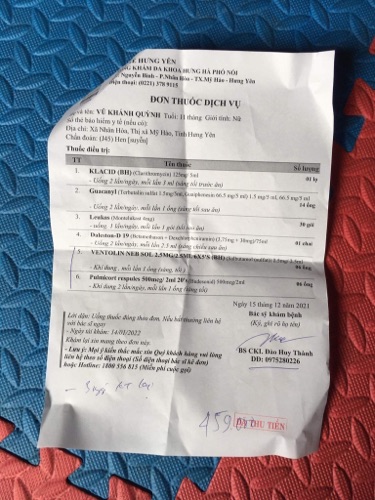 Chào bsi, bé nhà e bị ho 2 hôm xong có đờm và khò khè, đi khám thì bsi chuẩn đoán hen suyễn.cách đây 2 tuần bé cũng nằm viện điều trị tiểu phế quản. Bsi có kê thuốc này cho bé nhà e.dùng thuốc nay ngày t3 rồi nhưng tình trạng vẫn còn nhiều đờm, khò khè to khi nào ho bật được đờm thì mới đỡ hơn chút. Bé có dịch mũi họng kiểu nhầy sệt nên nó bám dính không bật ra được.mũi k ngạt nhưng rửa lại ra nhiều mũi nhầy.Bé ho ít. E dạy bé ho cho bật đờm ra thì thi thoảng được vài cái.cảm giác đờm nó sánh không ra được Bsi xem giúp em giờ làm thế nào với ạ.tiếp tục dùng đơn thuốc này hay phải làm sao bây giờ ạ