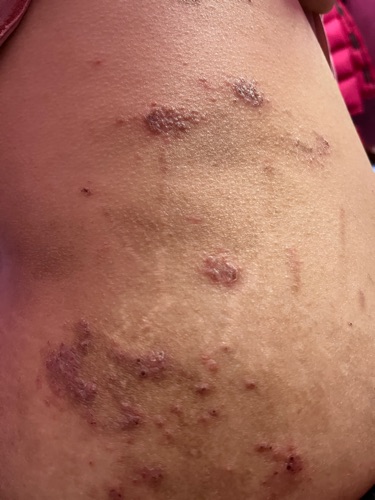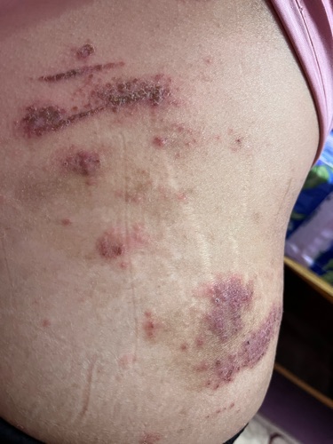 Dạ kéo dài cũng lâu rồi ạ. Em dùng thuốc 7 màu thấy vết thương khô với hơi lành nên em dừng không dùng nữa. Một thời gian thì lại có mủ và em bắt đầu ngứa. Em dùng tay gãi nên vết thương ngày một lan ra. (Đợt tháng 4 em có làm xét nghiệm và không bị tiểu đường. Em bị viêm da cơ địa và hay dùng thuốc ở bệnh viện da liễu quận 3 ạ)