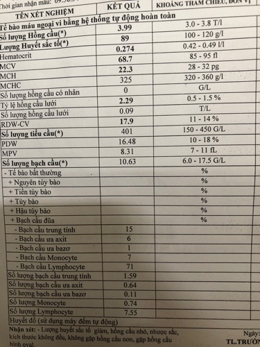 Dạ bác sĩ giải thích là thiếu sắt thôi ạ. Vì bố bé lấy kết quả nên em k đi k hỏi kĩ được ạ.