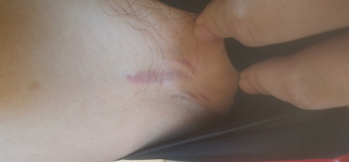Dạ e chào bác sĩ, em xuất hiện các vết như này ở bẹn cũng hơn tháng rồi, lúc đầu nó bé và chỉ có 1 vết, giờ thì to ra và có thêm các vết khác xuất hiện. Nó màu hồng và tím, không đau không ngứa, sờ vào thì khó chịu, hơi lõm xuống, vùng da chỗ bị thì giống như bị mất cảm giác vậy, bề mặt da kéo ra thì nhăn lại, k giống như da bình thường. Em cảm ơn bác sĩ nhiều.