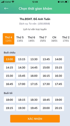 Em đặt lịch xong thì đến bước thanh toán rồi ở góc màn hình có mã ưu đãi đó. Em làm tiếp nhé