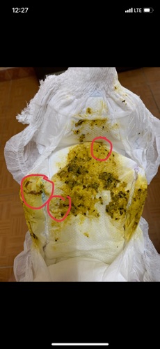 bác ơi cho cháu hỏi con nhà cháu 11th đi ị như vậy phân như hình có các sợi sợi ma thây đỏ thẫm thì có sao ko ạ