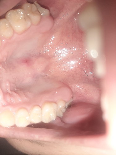 Em bị đau và có nổi cục nhỏ trên khẩu cứng hàm. Bác sĩ cho em hỏi bị gì và em nên làm gì ạ?