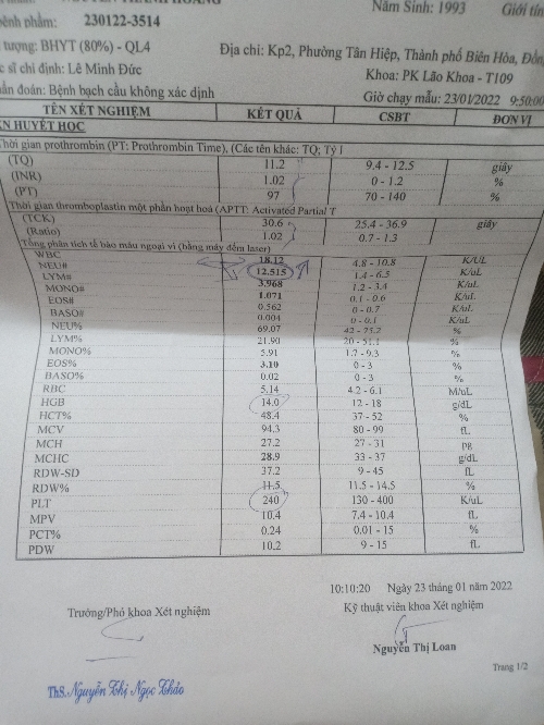 Mong bác sĩ phân tích dùm em xét nghiệm công thức máu này ạ ! , có liên quan đến bệnh lý nguy hiểm gì ko ạ ? Em cảm ơn ạ