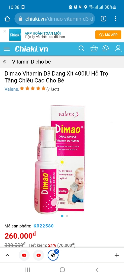 Chào bác sĩ, bé nhà e 1 tuổi e muốn bổ sung vitamin d dạng xịt dimao, và vitamin k2 keovon có được không ạ.hai loai nay có dùng kết hợp được không, và dùng cách nhau bao lâu hay cùng một lúc đươc ạ. Em cảm ơn bác sĩ ạ.