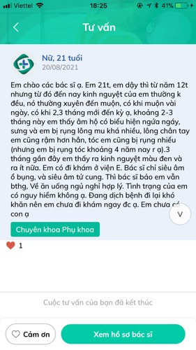 Em là bệnh nhân 3 hôm trước đc bác sĩ tư vấn. Lúc đó em cũng nghĩ đơn giản là em đến kỳ nhưng mà đợt này khác mọi lần nên em sợ