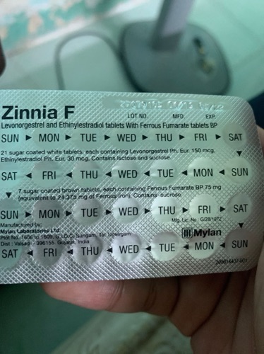 em phá thai 4 tuần bằng thuốc tại phòng khám gần nhà lúc đầu em uống viên M 2 ngày sau ngậm 3viên dưới lưỡi sau đó đau bụng sốt rồi ra máu vừa nhưng k thấy máu cục 2 tuần sau em tái khám thì bs bảo còn ứ dịch và cho em thuốc tránh thai hằng ngày ZINNIA F kêu uống sẽ ra Vậy cho em hỏi có đúng khôg? Đến giờ cơ thể em vẫn mệt mỏi