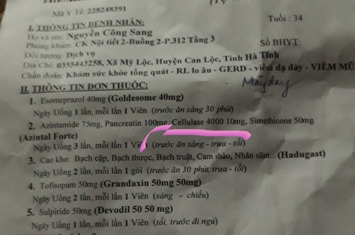 Da em đi khám bác sỉ bảo e bị viêm dạ dày có kê cho e một đơn thuốc gồm 5loại thuốc nhưng vi ko để ý e ko hỏi bác sỉ cách uống ..về nhà e e uống theo bác si kê đơn nhưng có số thuốc thứ 2la e ko hiểu cách uống ..nên e viết lên đây mong bác si giup