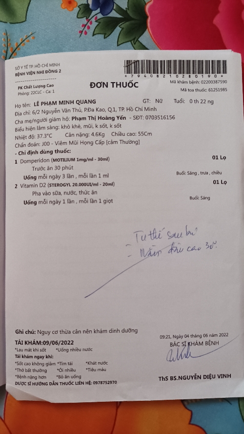Chào bác sĩ, bé nhà em nay được 24 ngày tuổi. Hôm thứ 7 vừa rồi có đưa bé đến bv nhi đồng khám do bé khò khè so mũi. Nhưng bác sĩ o bv nhi đong lai cho thuốc về tiêu hóa, và vitamin D không có loại nào chuyên về mũi họng cho be. Về nhà e có rửa mũi bằng nước muối sinh lý, hút mũi nhưng bé vẫn không đỡ. Bé bị giật mình do nghẹt mui, ngủ không ngon giấc. E không biết nen làm thế nào, mong bác sĩ tư vấn giúp em. Cảm ơn bác sĩ