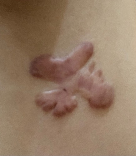 Bác sĩ ơi trước đây em bị mảnh thuỷ tinh vỡ của bình nước văng vào (cách đây 3 năm) và hiện nay có nốt thâm, hơi ngứa thì có sao k ạ? Em gửi kèm hình ảnh mong bác sĩ tư vấn giúp em ạ.