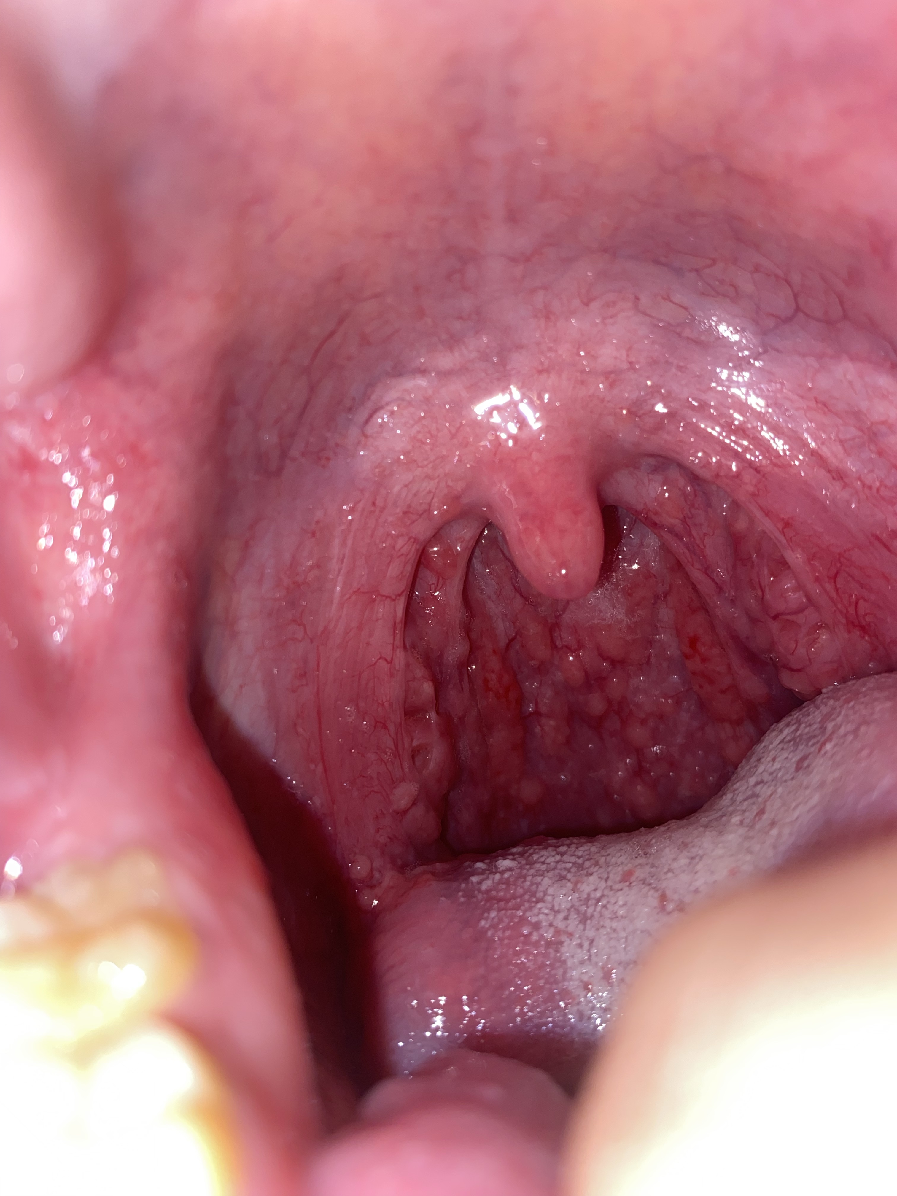 Cháu chào bác sĩ ạ bác sĩ cho cháu hỏi là cổ họng cả cuối lưỡi cháu bị nổi hạt như thế này thì là bị làm sao ạ