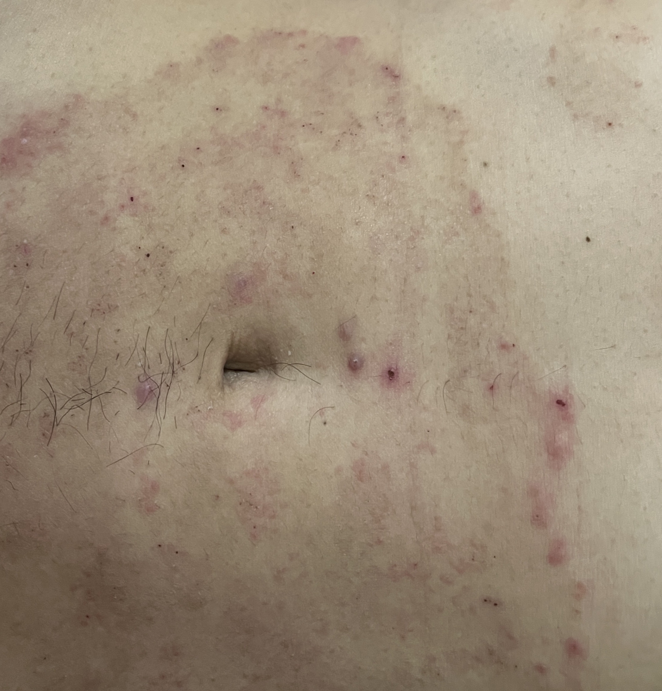 Mụn đỏ ngứa ở xung quanh bụng , bong da ngứa thường xuyên