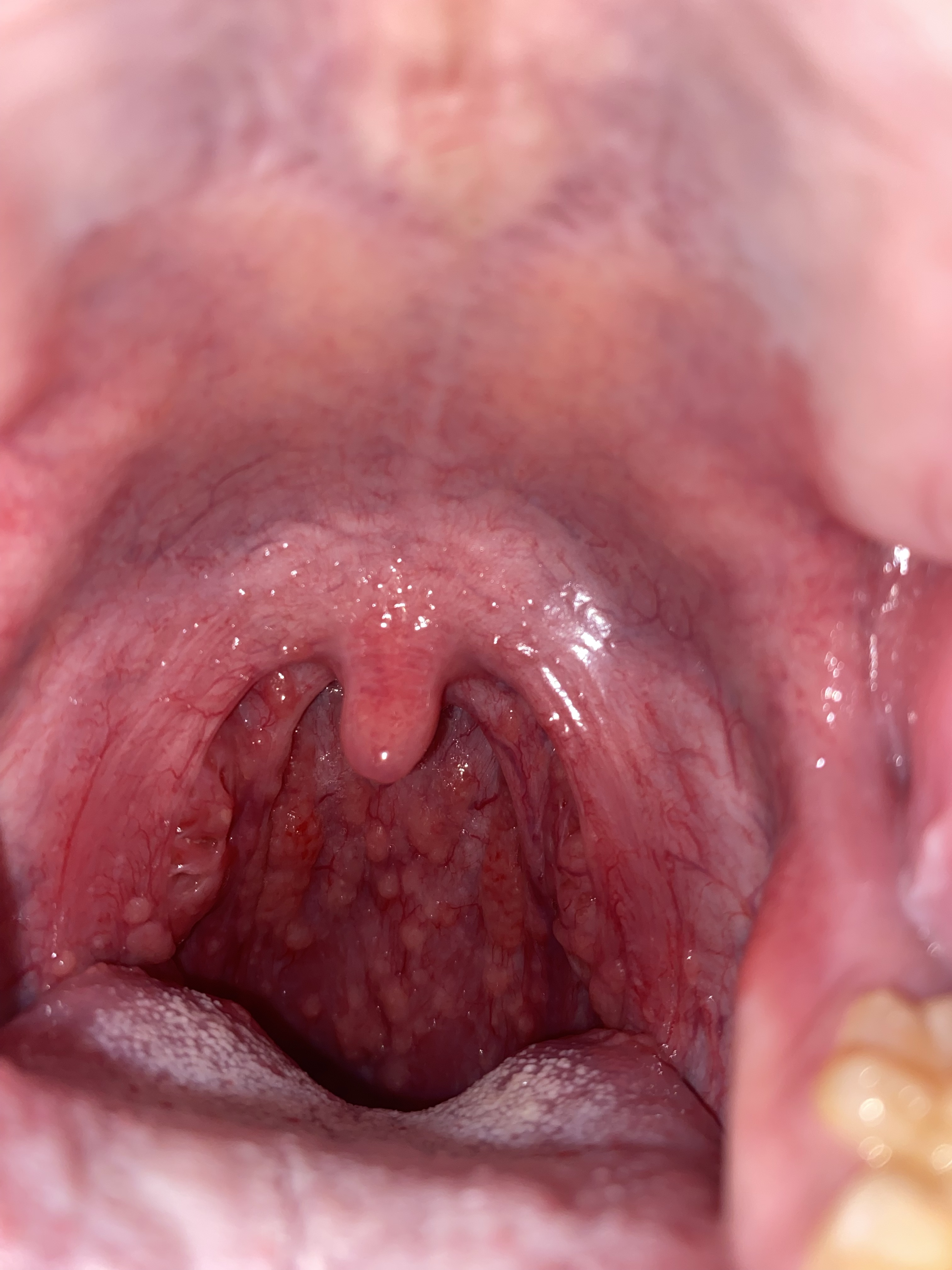 Cháu chào bác sĩ ạ bác sĩ cho cháu hỏi là gốc lưỡi và họng cháu bị như này là sao ạ