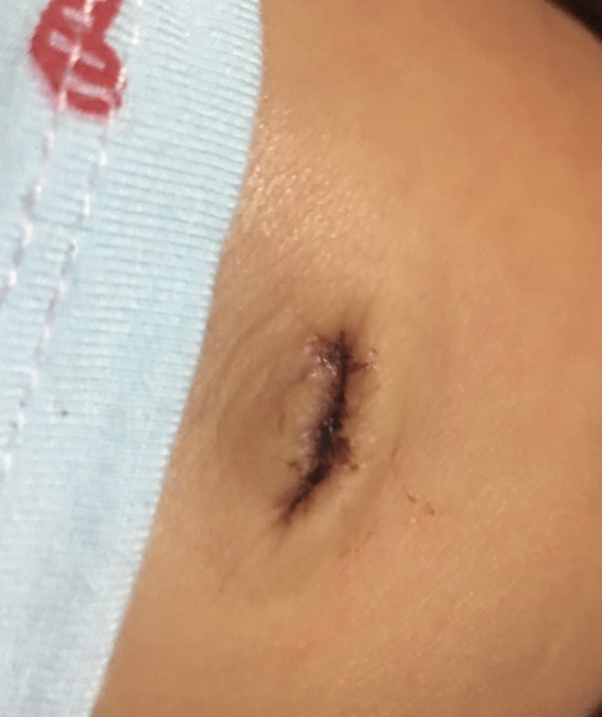 chào bác sĩ ạ, con e rụng rốn được 5 hôm rồi, nhưng vẫn bị gỉ máu như ảnh, không mùi ạ, thế cháu có bị sao không ạ, và cần làm gì để vệ sinh hết chảy máu ạ