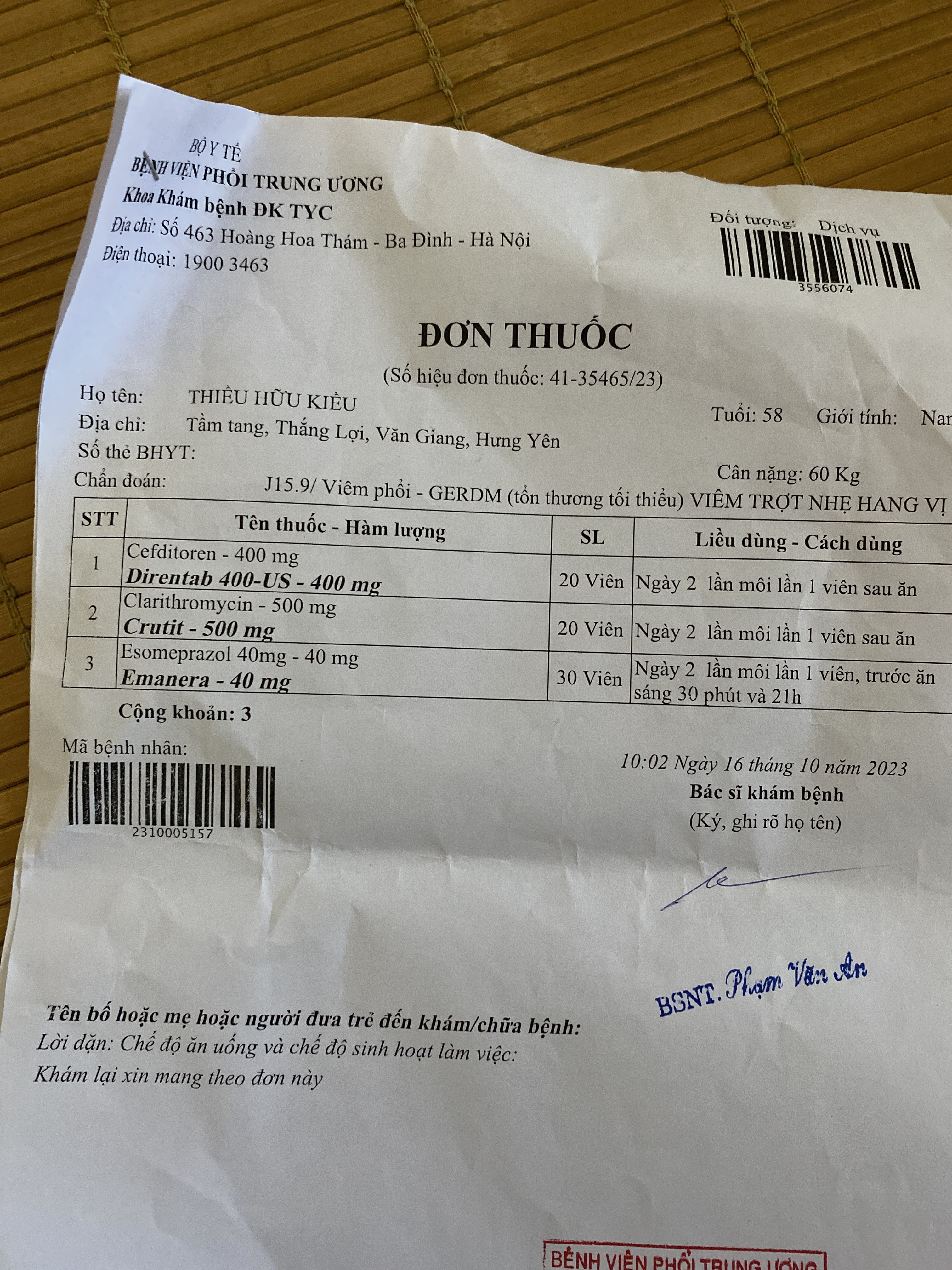 Bác nên tái khám để đánh giá xem tình trạng viêm phổi có còn hay không. Ho cũng có thể do GERD nữa