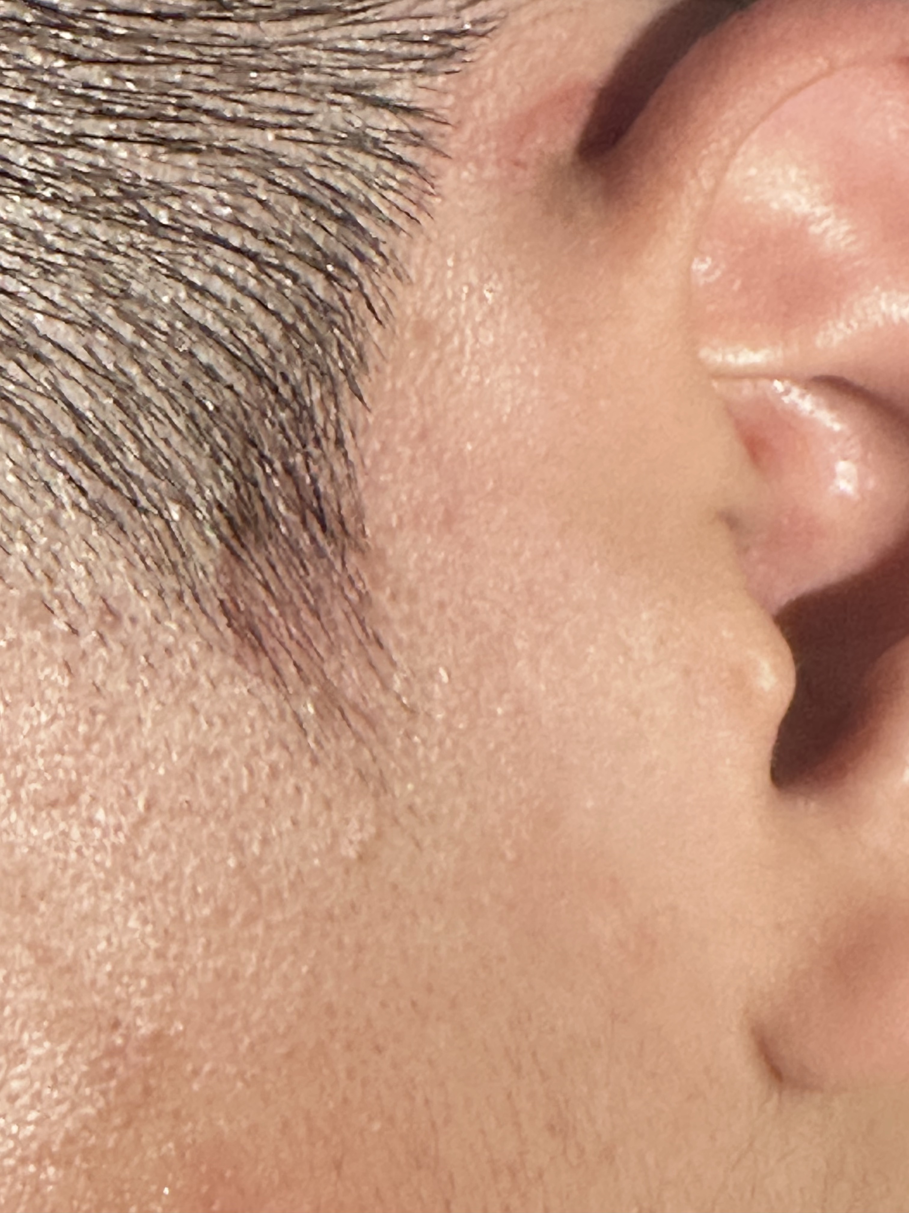 Em bị mọc cái vết gì đỏ đỏ sần sần gần mai tóc em, mà nó hình chữ U ạ. Đây có phải nấm ko ạ và chữa thế nào ạ