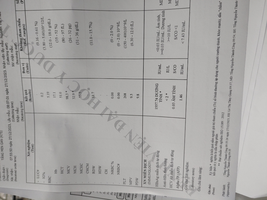 Em gửi bác sĩ kết quả khám. Gồm men gan, định lượng hbsag , nếu có định lượng tải lượng virus thì tốt. Những trường hợp viêm gan B mạn giai đoạn không hoạt động, không tăng men gan thì không cần dùng thuốc em