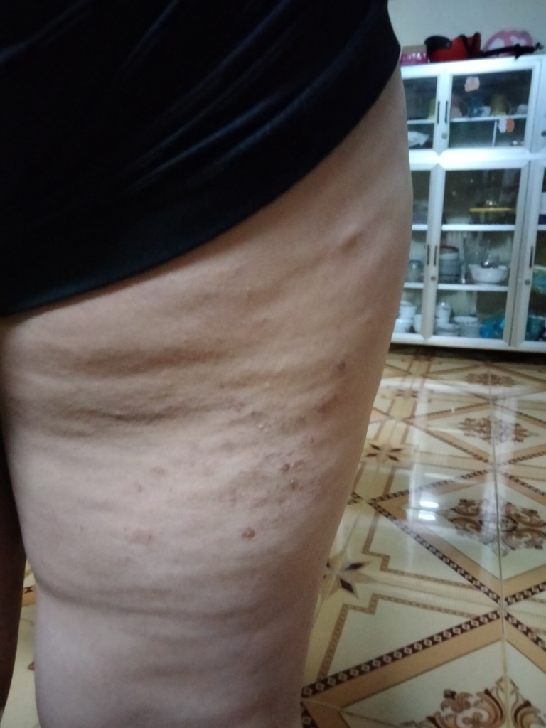 Dạ chào bác sĩ ,cho e hỏi .Da vùng đùi e vào mùa lạnh hay bị ngứa gãi thành ra thế này là bị gì ạ