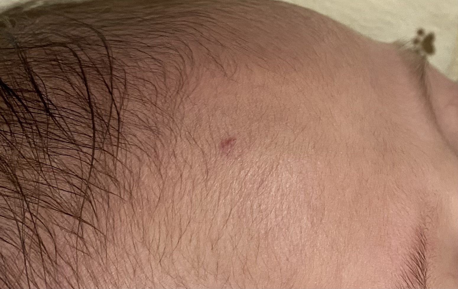 Sau khi sinh vài tuần, trẻ mọc nốt đỏ trên trán có sao không?
