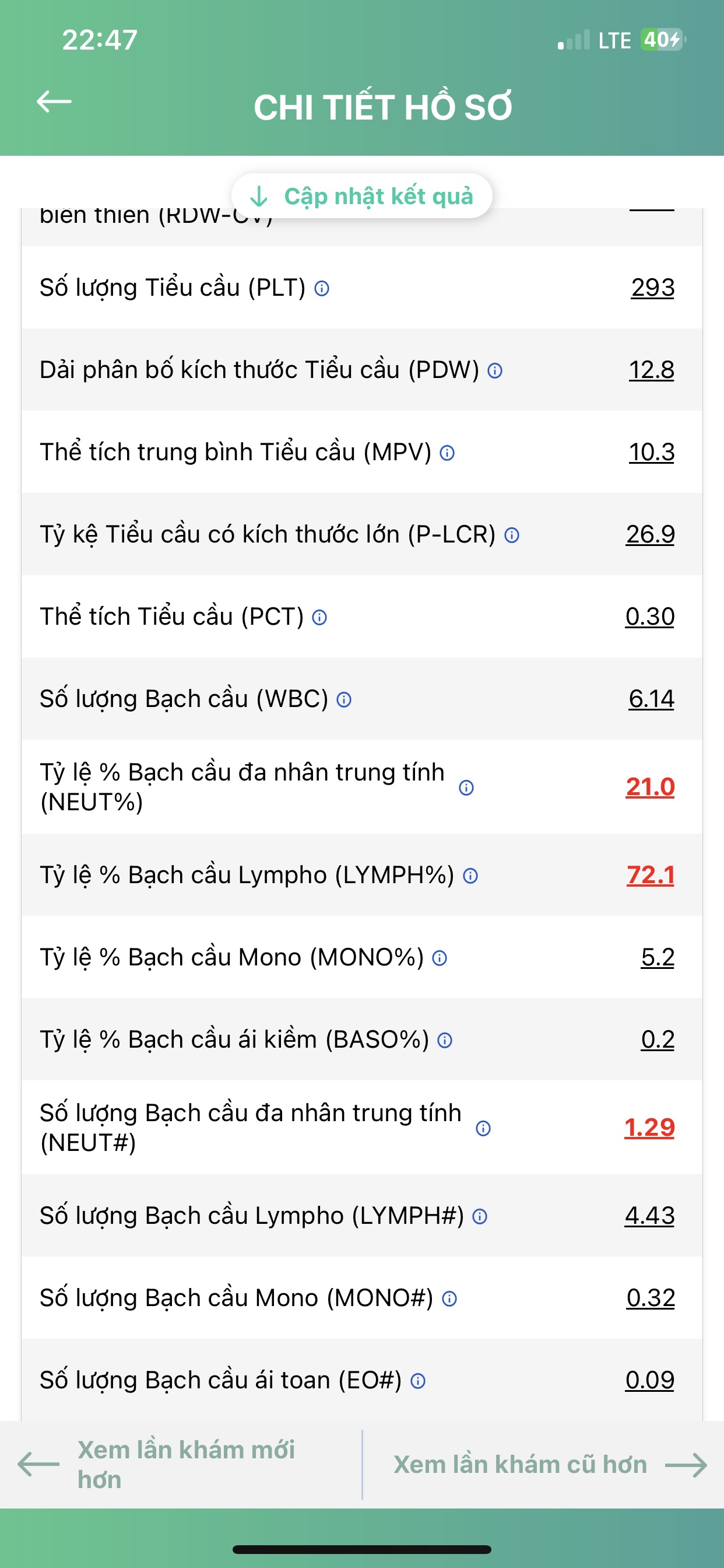 Em thấy mình có 3 chỉ số máu bất thường mà khi đi khám bs không nói gì đến các chỉ số này nên em muốn nhờ bs tư vấn giúp em có cần lưu ý gì không ạ, hình 1 là ngày 30/08/2023 em mới uống thuốc điều trị dạ dày 1 tháng, hình 2 là 11/10/2023 em mới dừng thuốc điều trị dạ dày. Em bị trầm cảm, stress, lo âu, bị viêm dạ dày, thực quản, viêm xoang, amydal mạn tính và nổi nhiều hạch ở bẹn, nách, cổ(em đã sinh thiết 3 năm trước) và đặc biệt mỗi lần ốm sốt em hay bị đau nhức toàn thân. Thỉnh thoảng em có bị đau khớp đau cơ. Từ bé em đã gầy và hiện tại em cao gần m7 nặng chỉ 50kg. Em cảm ơn bs ạ