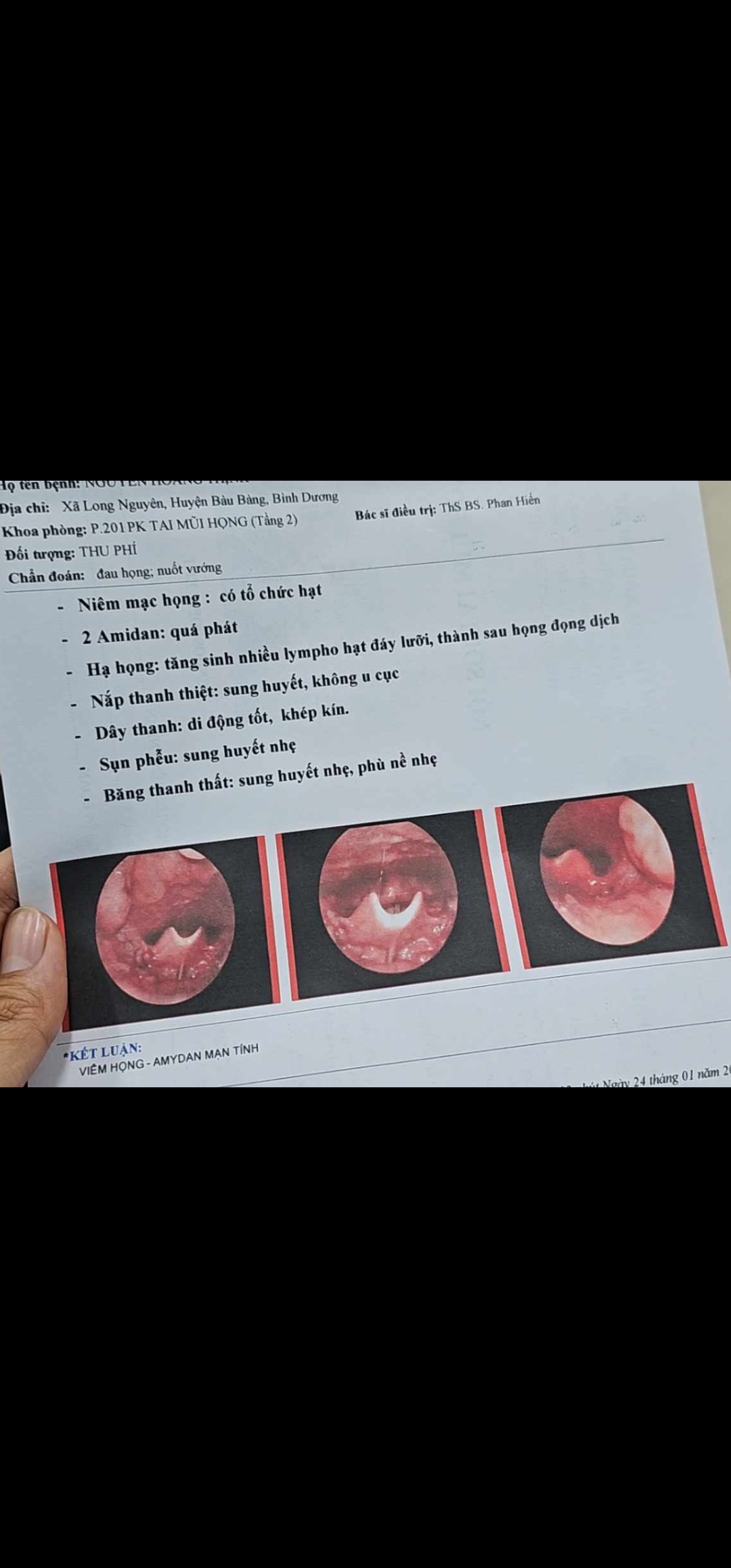 Dạ kính thưa các bác sĩ. Cháu bị viêm họng do uống nước đá. Sau đó có thấy trong họng nổi các hạt k điều nhau ở thành sau họng. Cháu có đi nội soi thì được kết quả như hình. Không biết các hạt đó có nguy hiểm? Và có cách nào để thu nhỏ hay hạn chế các hạt đó k ạ? Cháu cảm ơn