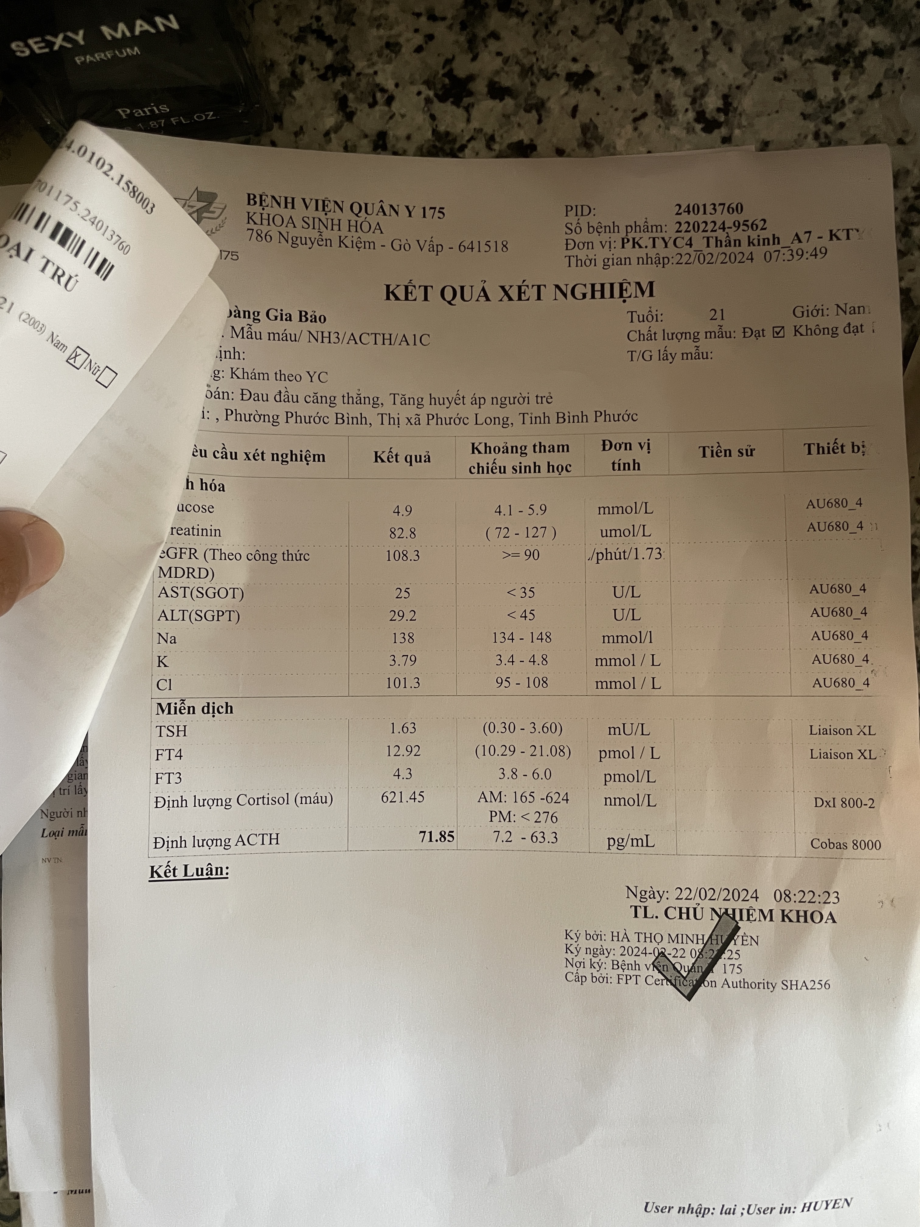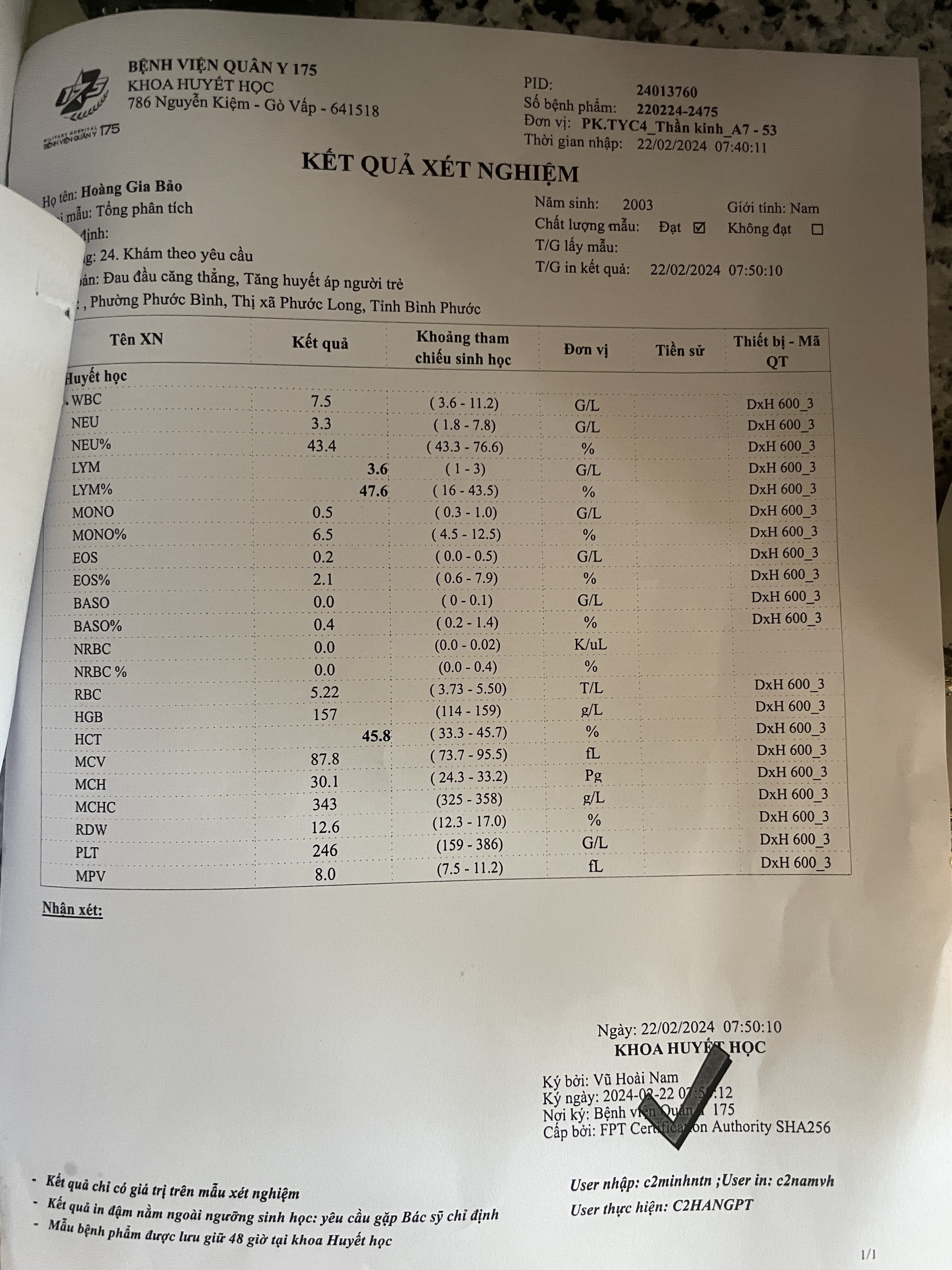 Kết quả xét nghiệm máu của em có sao k ạ, có bị thiếu máu não hay tăng huyết áp k ạ