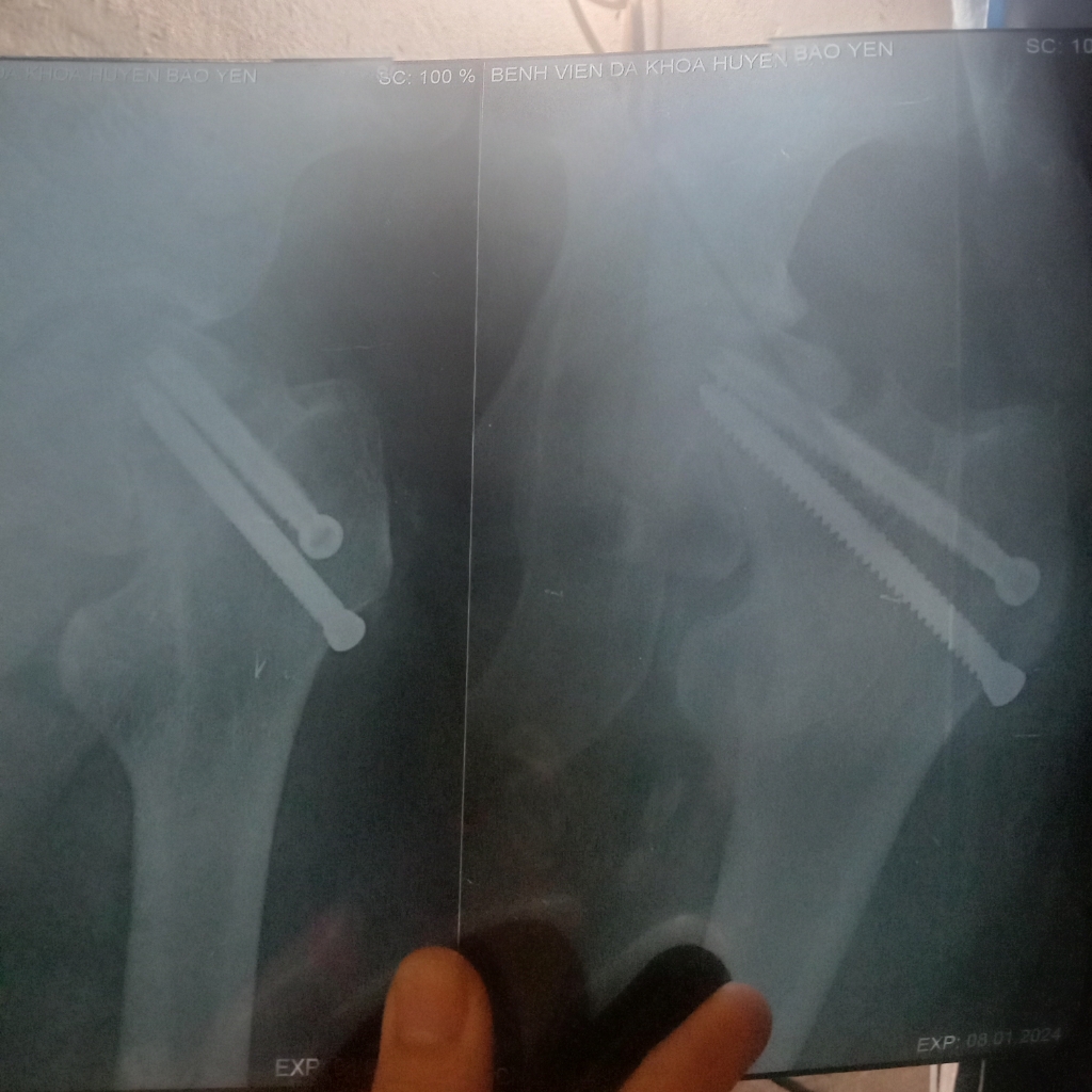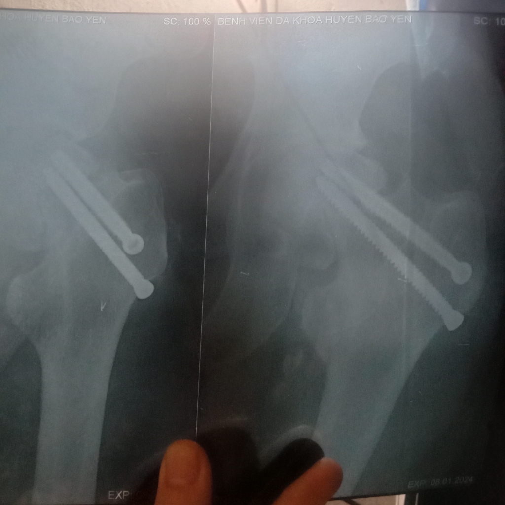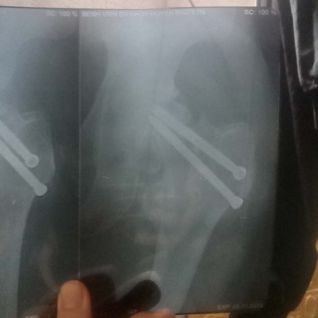 Đây là hình ảnh vít đinh của em ạ. Em thấy nó lệch lệch hay sao ạ bác sĩ.
