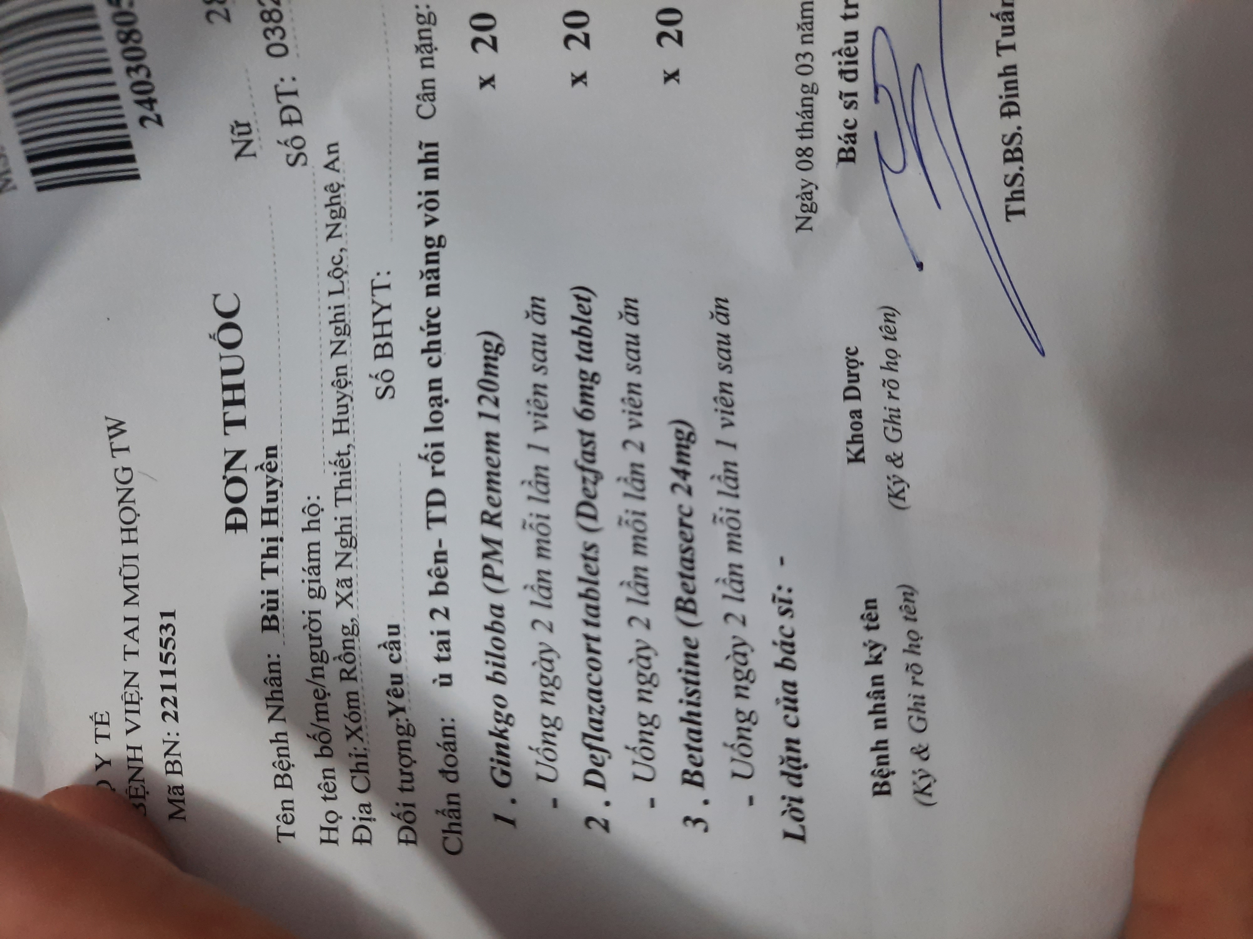 Em bị ù tai gần 1 năm. 3 tháng gần đây bệnh trở nặng rất nhanh Tai có cảm giác căng tức như bị nghẹt ở trong. Dùng dung dịch nhỏ vào tai thì tiếng ù tăng lên rất lớn, lúc dung dịch chảy ra thì về mức ban đầu. Đặc biệt lúc nằm nghiêng bên nào thì bên đấy ù rất to cảm giác chói tai. Lúc nuốt nước bọt hay ngáp thì có tiếng tách tách trong tai.Giờ em chỉ dám nằm ngửa. Đã đi khám ở tai mũi họng TW. Bác sĩ bảo tắc vòi nhĩ nhưng uống thuốc 10 ngày không có tiến triển. Liệu có phải em bị ù tai ứ thanh dịch ở trong không ạ
