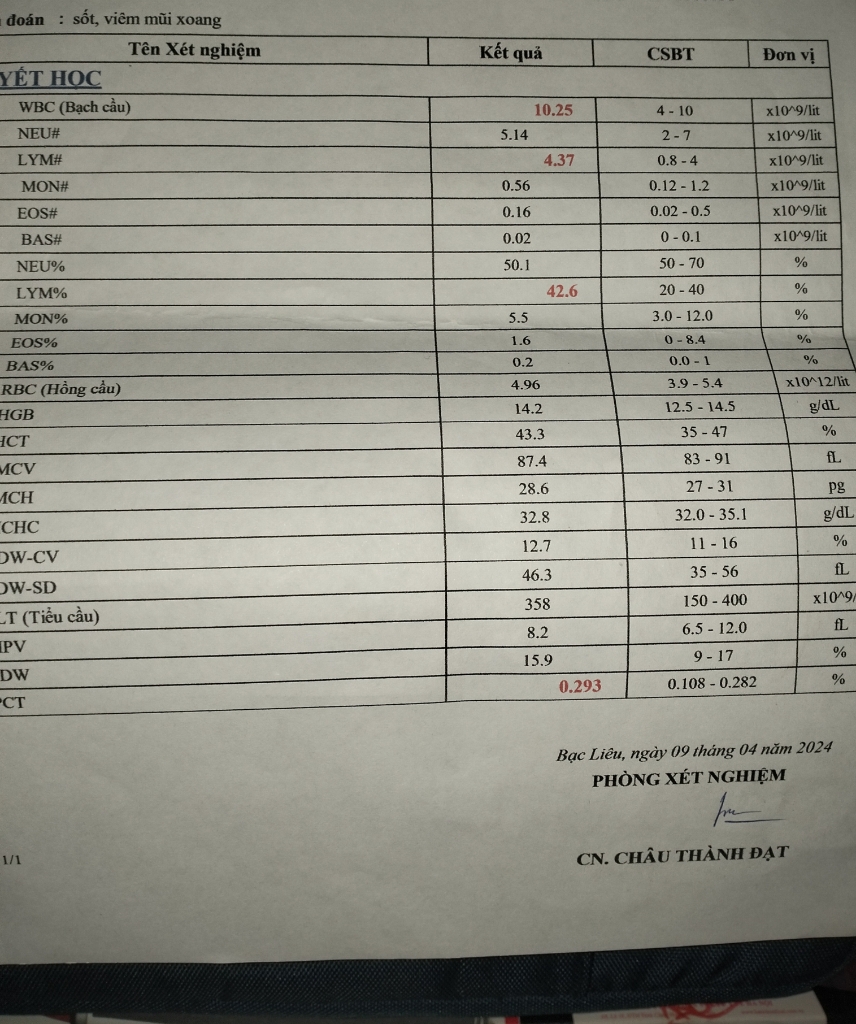 Tháng trước em xét nghiệm chỉ số LYM là 42.6 %. Hôm nay em xét nghiệm lại thì chỉ số LYM là 51.6%. Chỉ số LYM vậy là bình thường hay không ạ bác sĩ.