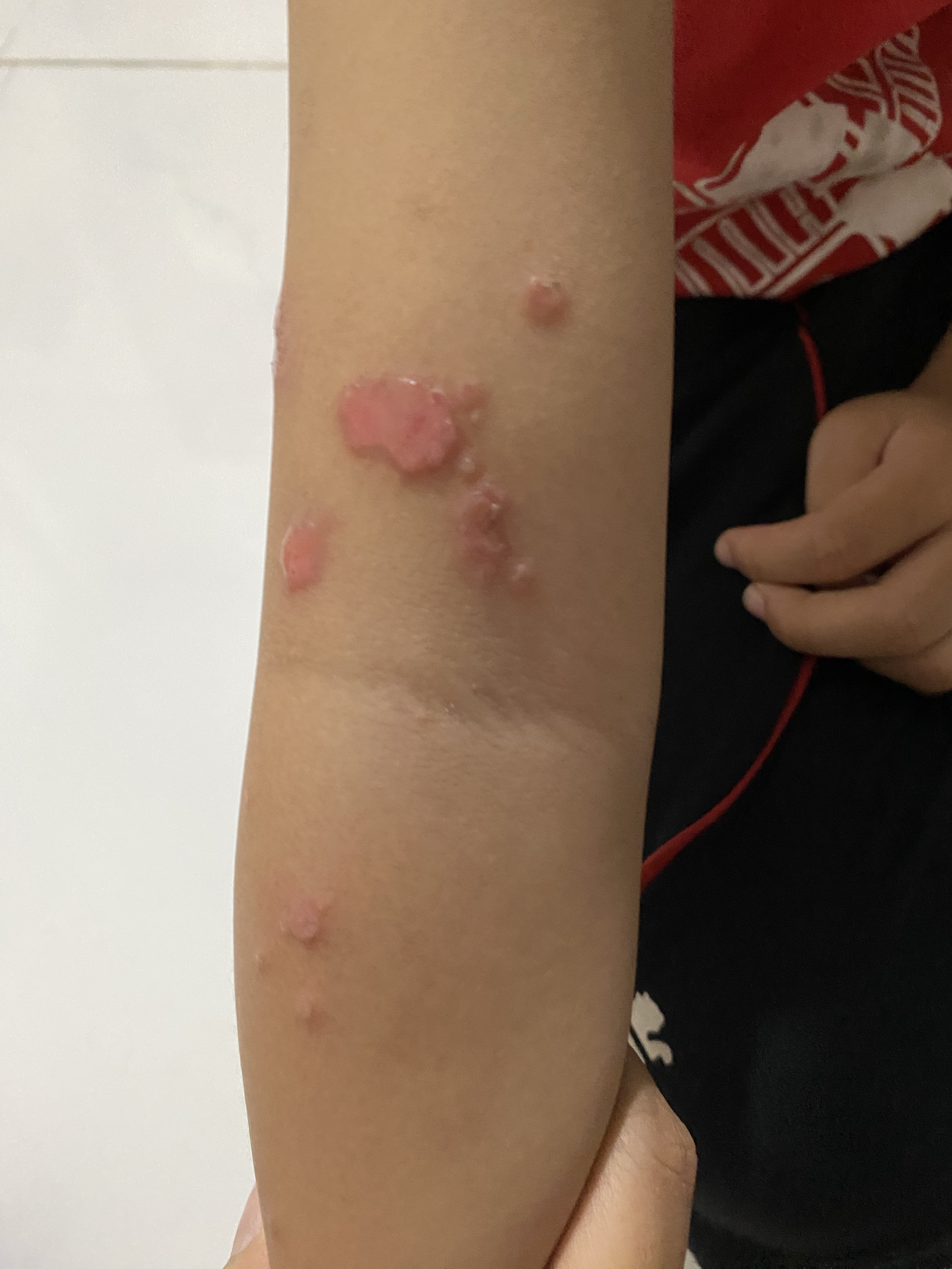 con em bị như thế này khắp người. mỗi ngày về lở thêm vài chỗ.con em bị gì vậy các mẹ