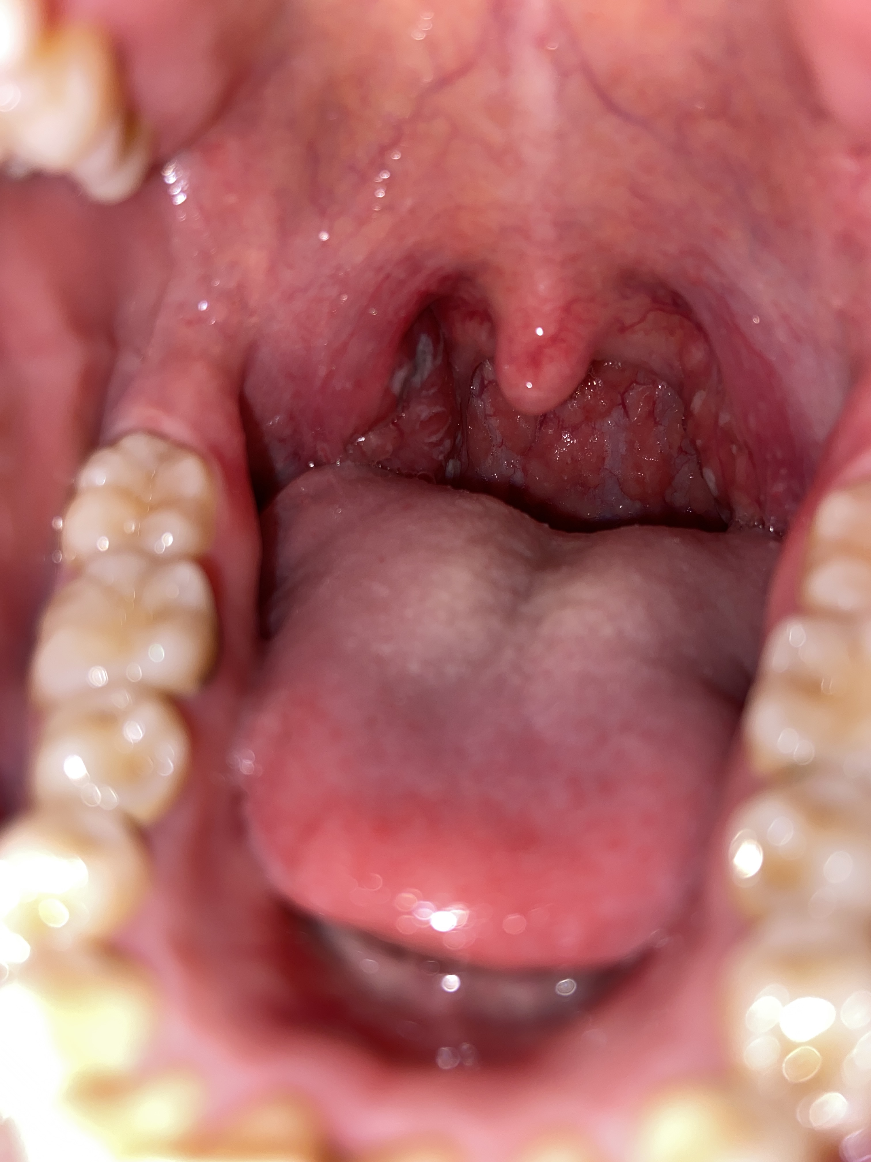 Bác sĩ ơi em đau họng xuất hiện mủ trắng.đi khám hồi sáng kết luận viêm amidan có mủ. Giờ soi đèn thấy mủ chuyển sang màu đen như này là sao ạ