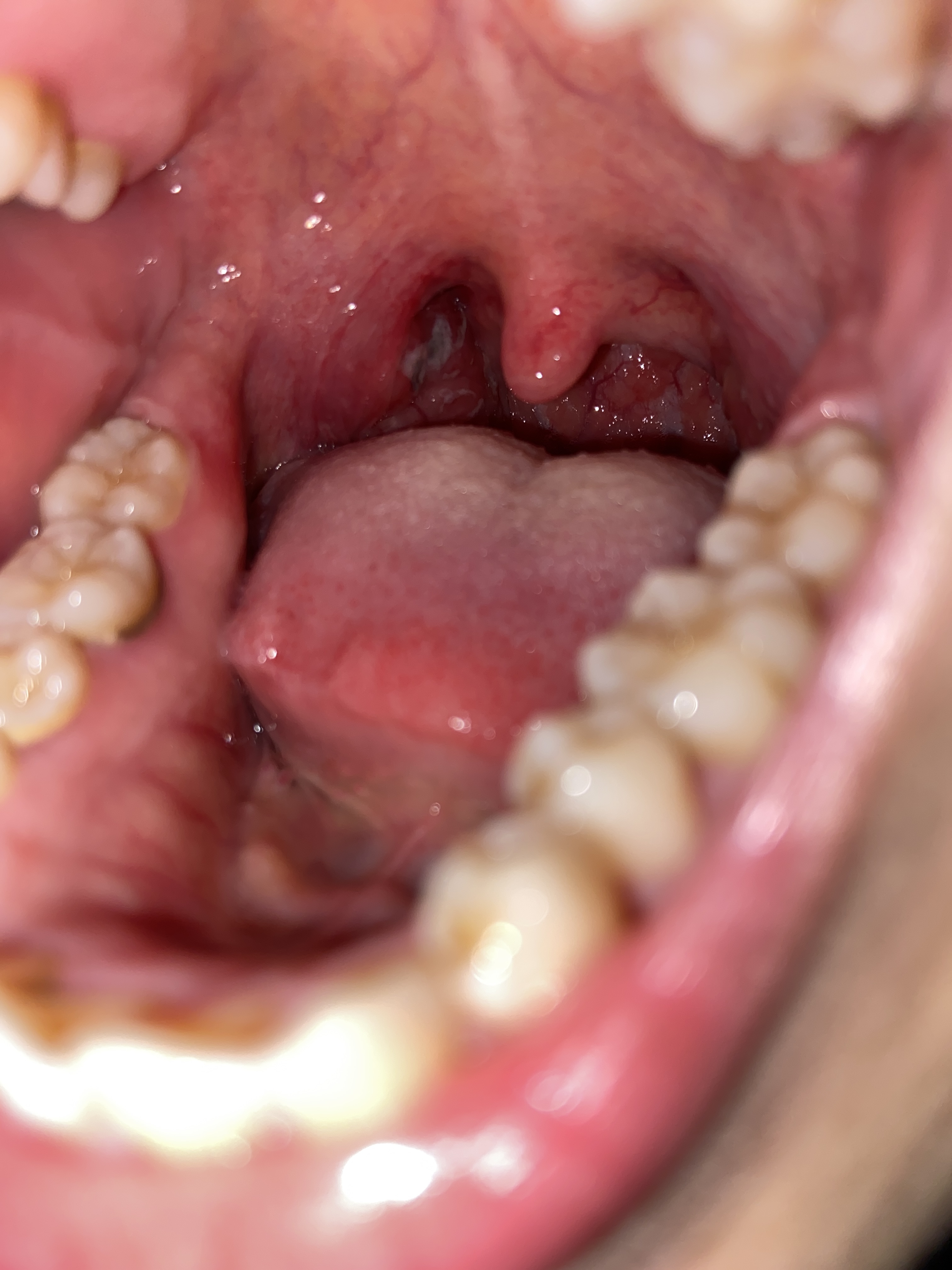 Hình ảnh amydal hốc mủ. Vị trí đó em kiểm tra có hiện tượng vỡ mủ không