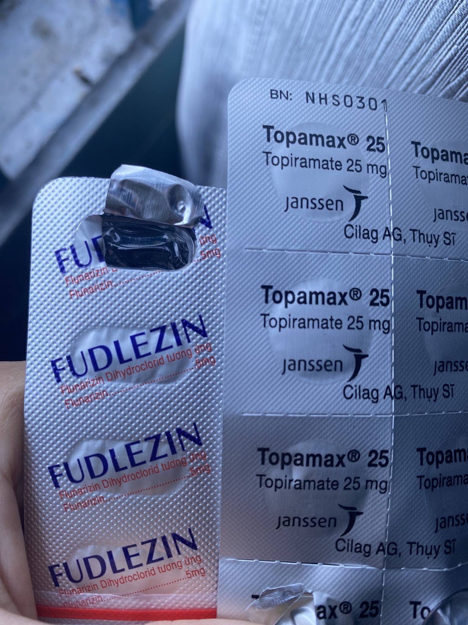 flunarizin 5mg và topiramate 25mg ạ