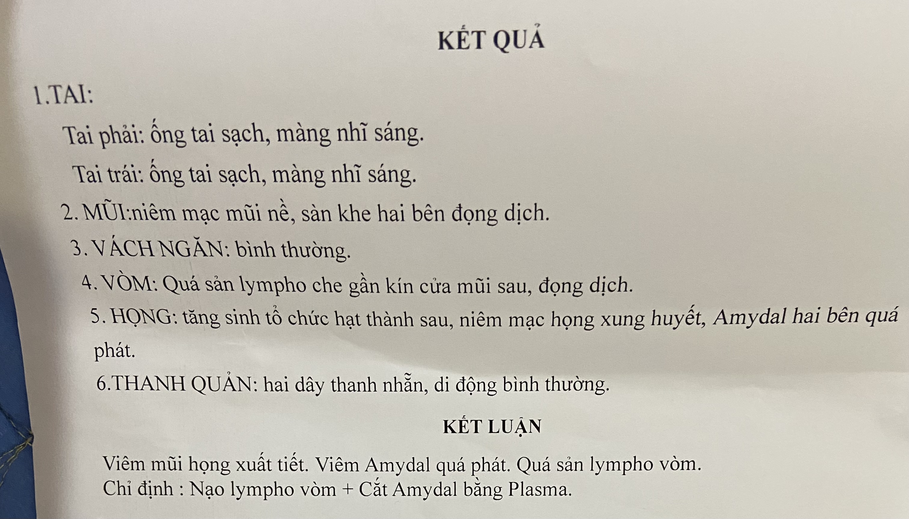 Chào bác sĩ, Tôi bị ho + đau họng tầm 10 ngày nên hôm nay có đi nội soi tai mũi họng tại bệnh viện M. Bác sĩ kết luận “quá sản lympho vòm”, cho thuốc kháng sinh uống trong 7 ngày và chỉ định nạo lympho vòm trong thời gian sớm nhất. Bác sĩ giải thích: Tôi có 1 khối u khá to, đây là u lành tính và nên quyết định nạo sớm vì để về lâu về dài sẽ dễ tiến triển thành ung thư? Bác sĩ cũng chưa tiến hành sinh thiết cho tôi nhưng đã kết luận đc đây là u lành hay ác tính? Thật sự bác sĩ tư vấn làm tôi rất hoang mang. Kính nhờ các bác sĩ ở đây giải đáp giúp tôi: liệu bệnh của tôi có khả năng cao tiến triển thành ung thư vòm họng? có phải tôi đang có một khối u không rõ lành hay ác tính cần phải đi làm sinh thiết? Tôi có cần đi nạo ko? Xin cảm ơn.