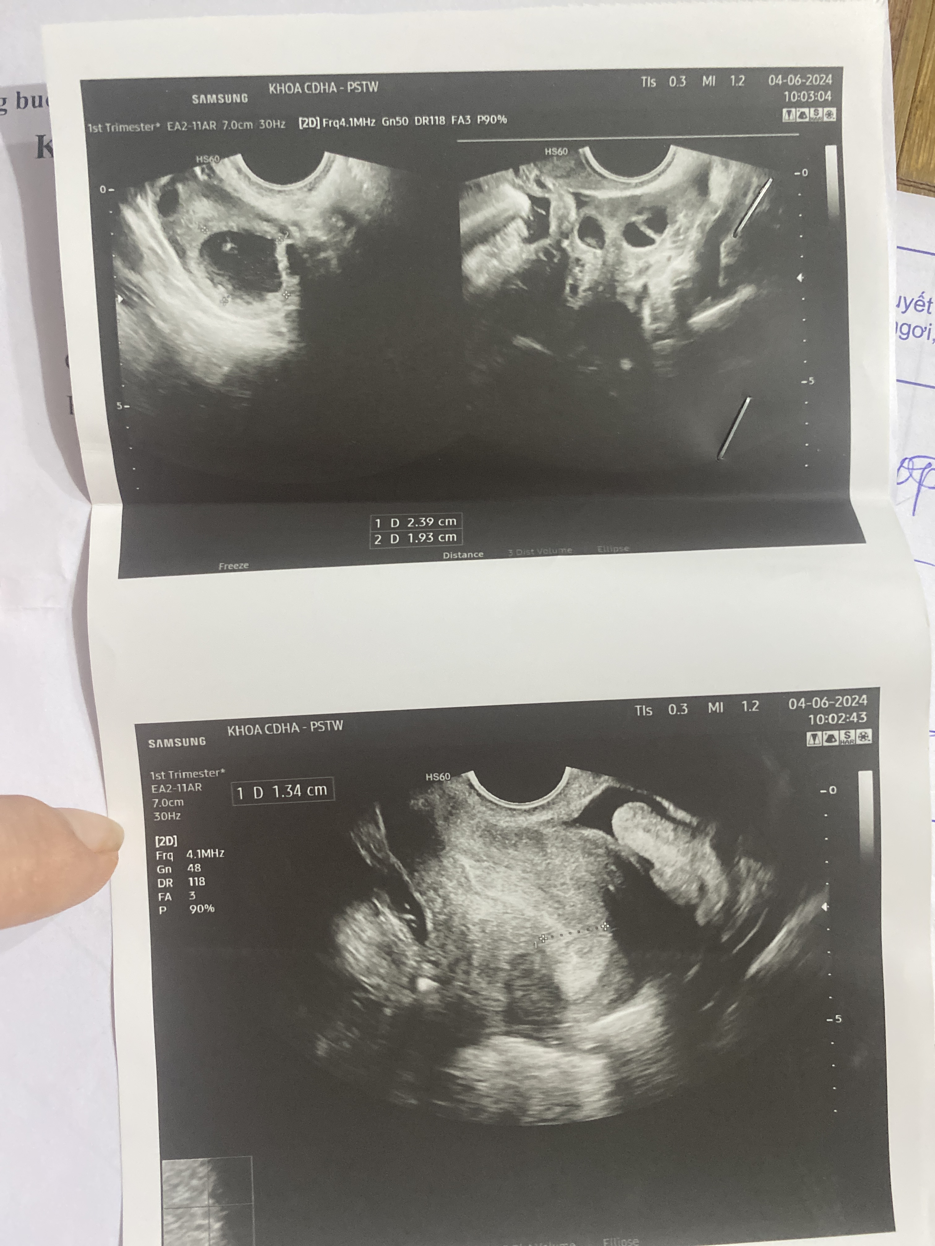 Em bị tình trạng gọi là thống kinh, siêu âm thấy có nang dịch không đồng nhất - cái này cần đánh giá kỹ hơn xem nang dạng lạc nội mạc, nang xuất huyết hay u bì, u quái… chẩn đoán đúng và đầy đủ rồi mới điều trị em nhé