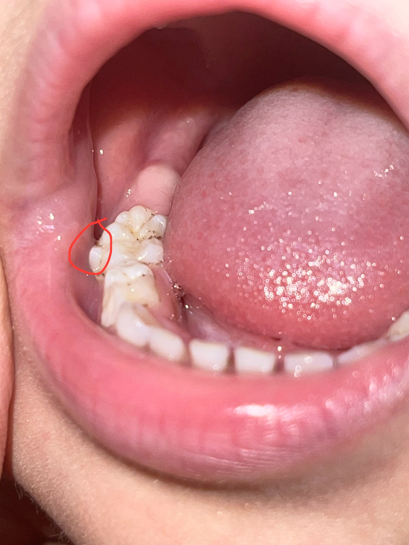 Con trai e 4 tuổi, gần đây trong lúc ăn, khi nhai hay có biểu hiện há mồm như bị cộm. Kiểm tra e thấy răng hàm dưới thứ 2 bên phải của cháu có phần chân lồi ra thêm 1 cục trông vướng víu và như liền mạch với răng. Bác sĩ xem giúp e đây là vấn đề gì và có thể xử lý như thế nào ạ. E cám ơn.